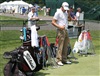 Titleist Brand Ambassador Nick Watney finishes up a phone call on his way to the range.