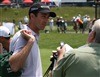 Down on the range, Titleist Brand Ambassador Geoff Ogilvy chats with members of the local media.