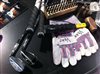Scotty Cameron prepares one of the display cases in the Titleist booth.