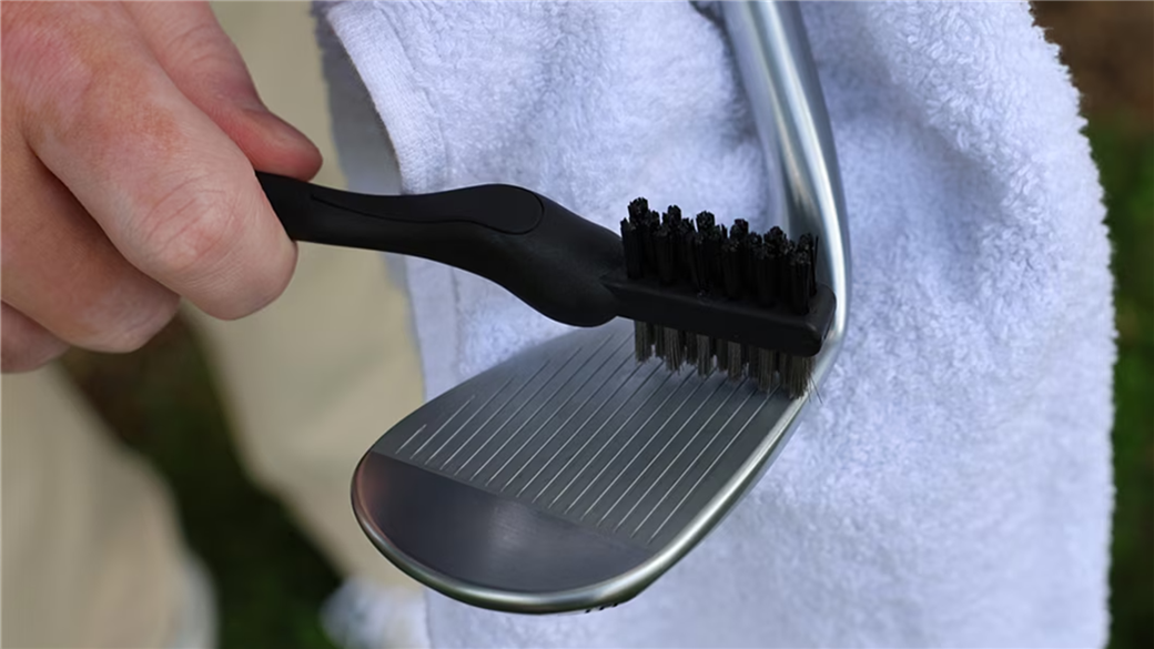 • Use a groove brush to scrub the face of the club and get into the grooves.